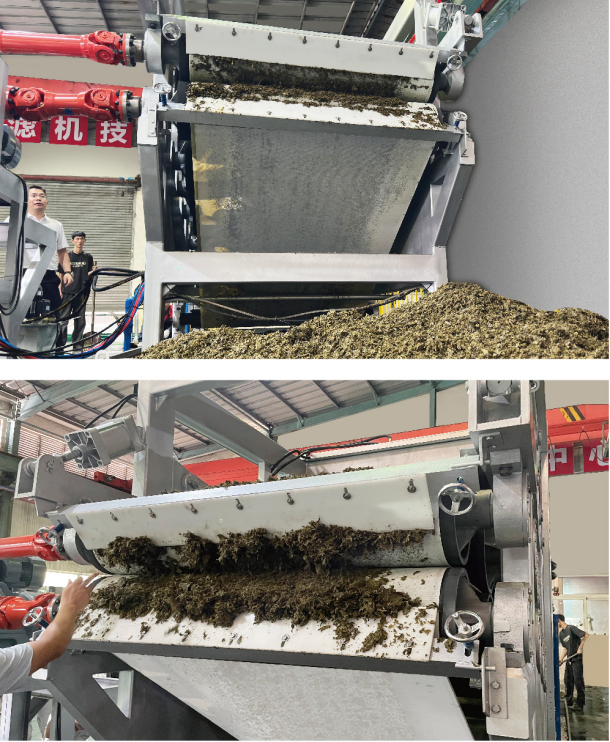 With a hydraulic pressure of 100 kilograms and a structural design of 8 setsof roller presses, it has a leading technical level among international peers,effectively solving the problem of deep dehydration of materials that do notrun out After pressing, the moisture content is lower and drier.