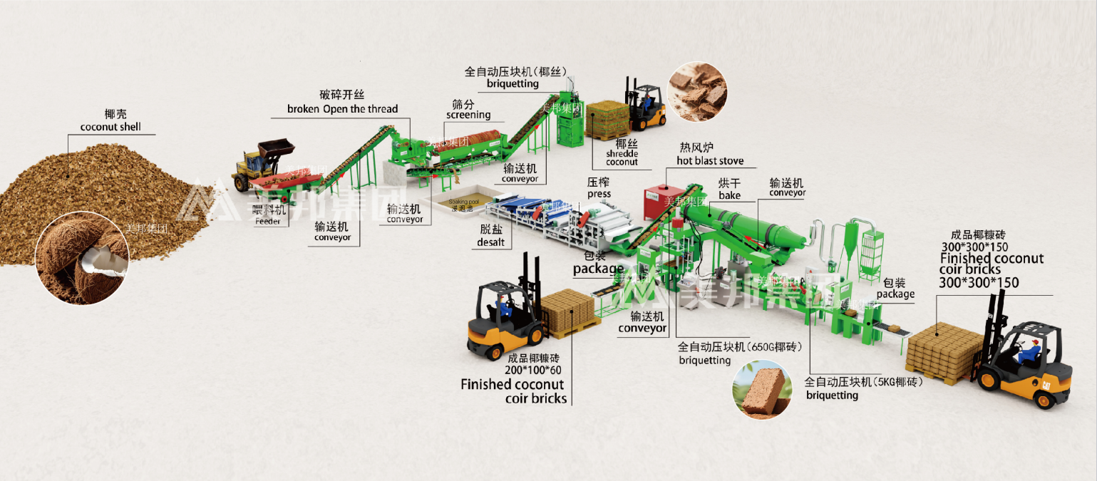 PROCESS FLOWCHART OF INTELLIGENT COCONUT COIRPRODUCTION LINE SYSTEM SOLUTION